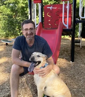 Tim with his dog “Chester V. Walt” CVW’s namesake.